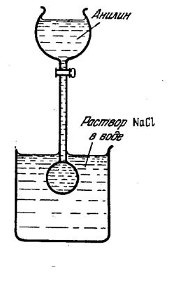 Опыт Плато проводится следующим образом: в сосуд, содержащий раствор поваренной соли в воде, вливают некоторое количество анилина, который не растворяется в растворе NaCI (рис.4). Концентрацию раствора подбирают так, чтобы его плотность была равна плотности анилина. Тогда анилин собирается в шар, плавающий в растворе.