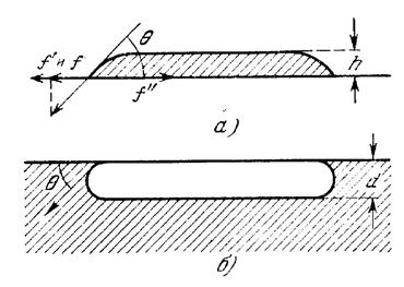 , и вместе с ней стремится превратить каплю в пленку. Этим двум силам противостоит сила поверхностного натяжения на поверхности жидкости f