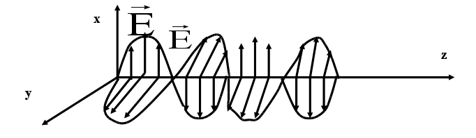 Под плоской ЭМ волной понимают волновой процесс, у которого составляющие электрического и магнитного полей изменяются в одинаковой фазе в плоскости перпендикулярной направлению распространения.
