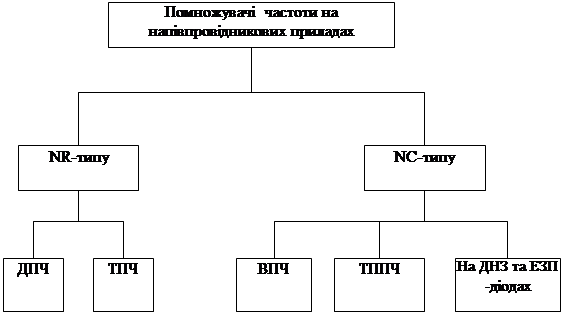 Мал. 1.1. Класифікація помножувачів частоти на напівпровідникових приладах