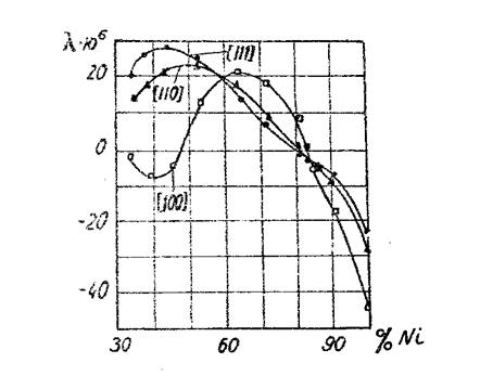 | 70% Ni | 1.65·10-1 | 89·10-4 | -61·10-4 | 150·10-4 |