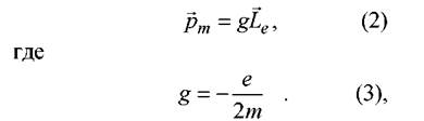 | Здесь m – масса электрона. Величина g называется гиромагнитным отношением орбитальных моментов. |