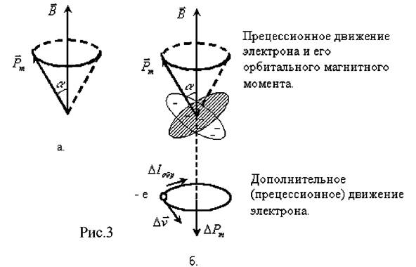 При внесении парамагнитного вещества в однородное магнитное поле постоянные магнитные моменты атомов (молекул) прецессируют вокруг направления вектора B индукции магнитного поля с ларморовской угловой скоростью wL (12).