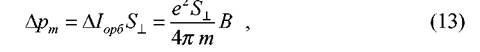 атоме, средняя площадь проекции орбит электронов в атоме на плоскость, перпендикулярную к направлению вектора B