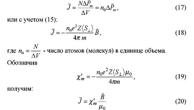 Итак, в результате воздействия внешнего магнитного поля у каждого атома возникает наведенный орбитальный магнитный момент (15). Выделим малый объем DV вещества. Магнитный