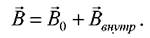 и равен геометрической сумме магнитных индукций внешнего B 0 и внутреннего B r внутр магнитных полей: