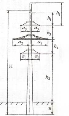 H=26,0м; h1=3,0м; h2=13,5м; h3=4,0м; a1=2,0м; a2=3,5м; a3=2,0м; b=3,3м