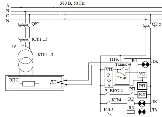 Принципиальная электрическая схема управления печью сопротивления