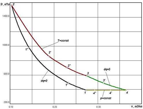 Таблица 3.3. Изменение термодинамических параметров процесса в основных точках