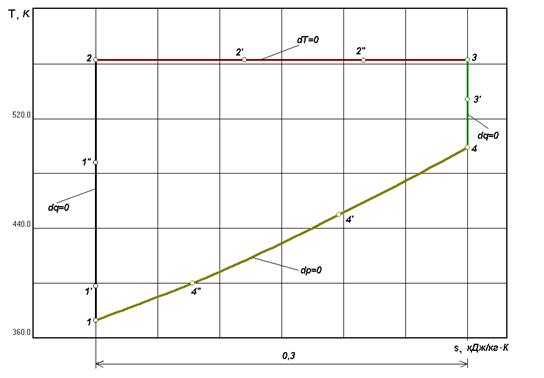 Таблица 3.4. Изменение термодинамических параметров процесса в дополнительных точках