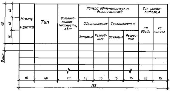 а – номера групп; б – марка, количество и сечение проводников; в – способ прокладки |