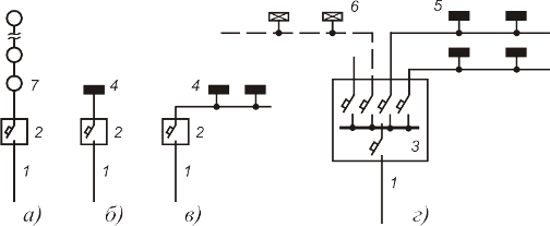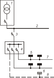 6. Количество проводов в линии (например три). Примечание. На двухпроводных линиях черточки не показывают |