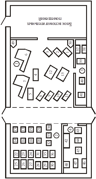Кроме производственных участков в цехе необходимо предусмотреть вспомогательные помещения (кабинеты; кладовые заготовок, сырья, инструмента; комнаты отдыха; гардеробы, душевые, преддушевые и т. п.), высота которых не должна превышать 3 метров.