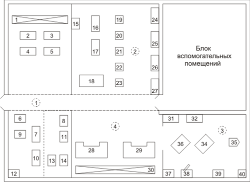 В приложении 1 приведены планы расположения технологического оборудования в цехах и спецификация оборудования по вариантам.