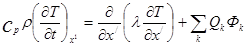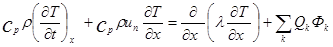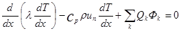 - скорость тепловыделения в k–й реакции (суммирование ведётся по всем возможным реакциям). Нижний индекс у частной производной по времени указывает, что эта производная берётся при x/