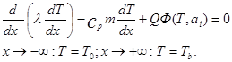 Источник тепловыделения Q Ф в (1.16) зависит от концентраций реагирующих веществ ai . Связь между ai и Т в каждой точке волны горения в общем случае неизвестна и не может быть определена без решения полной системы уравнений, включающей уравнения для концентраций. Однако для нас пока достаточно считать, что такая связь в принципе имеется (полагаем, что решение задачи о стационарной волне горения существует), и рассматривать только одно уравнение (1.16).
