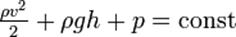 Константа в правой части обычно называется напором , или полным давлением, а также интегралом Бернулли . Размерность всех слагаемых — единица энергии, приходящейся на единицу объёма жидкости.