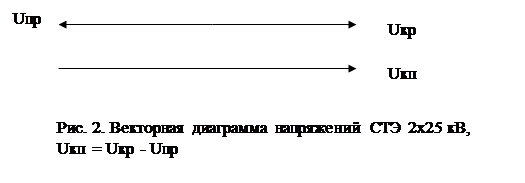Вектора напряжения Uкр = Uпр = 27,5 кВ и сдвинуты друг относительно друга на 180 электрических градусов. Напряжение между КС и ПП Uпр = Uкр - Uпр (рис. 2).