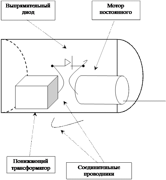 М - мотор, VD - выпрямительный диод, Т - понижающий трансформатор