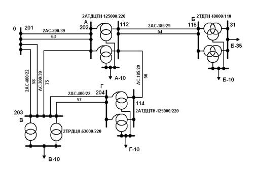 Рис.1. Схема существующей электрической сети 220/100 кВ