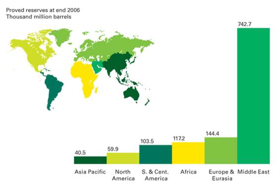 Рис. 1. Доказанные запасы нефти по состоянию на конец 2006 года (млрд. баррелей)