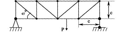 Рассчитать на прочность (т. е. подобрать площадь сечения) стержни 1, 2, 3, определив предварительно опасное положение силы Р=50 тонн, движущейся по нижнему поясу фермы; нагрузка , при движении груза, передается только на узлы фермы. Принять допустимое напряжение сигма = 1600 кг/см2 .