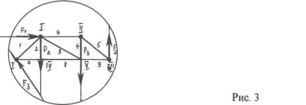 Это графический способ расчета усилий в стержнях фермы. Построение диаграммы Максвелла-Кремоны заключается в построении силовых многоугольников, построенных для всех узлов фермы, в один чертеж так, чтобы ни одно из усилий не повторялось дважды (рис. 3).
