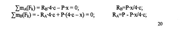Рассмотрим теперь случай, когда 2с<=х=>4с (рис. 3). Так как нагрузка передается только на узлы, то условия равновесия будут иметь следующий вид: