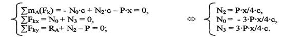 åFky = N2 +N1* cos(45°) - P = 0; Û N1 = (P – Px/ 4c)Ö2