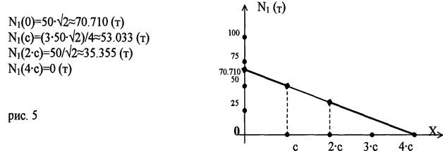 наиболее опасно положение груза при х= 0, тогда абсолютное значение усилия N1 (0)»70.710 (т), а S1 =70710 (кг) / 1600 (кг/см2 ) » 44.194 см2