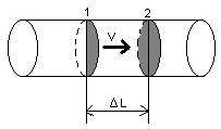 Рассмотрим участок проводника длиной ДL и площадью поперечного сечения S. Положительное направление в проводнике cсовпадает с направлением движения частиц и средней скоростью частиц v, заключенных в объеме, ограниченном сечениями 1 и 2.