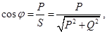 Коэффициент мощности потребителей определяется из треугольника мощностей: