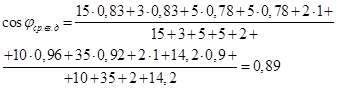 Средневзвешенный cosj определяется из следующего выражения:
