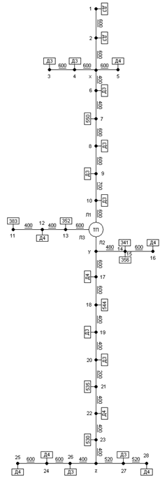 | Участки | L | R0 | X0 | R ЛФ | XЛФ |