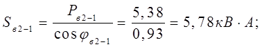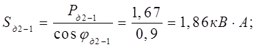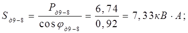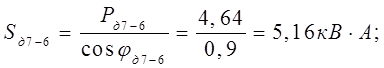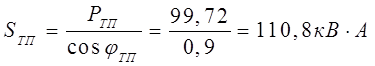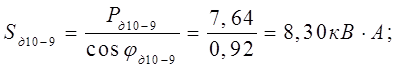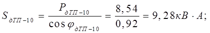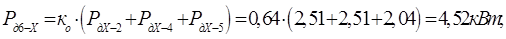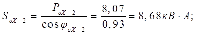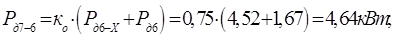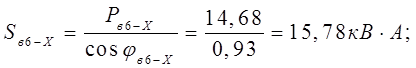 где P – наибольшая из слагаемых мощностей, кВт;