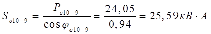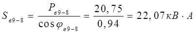 где S – полная мощность потребителя, кВА;
