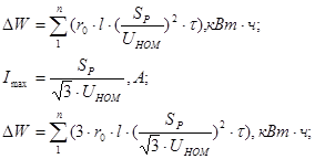 где Pд, Pв, - соответственно расчетная дневная и вечерняя нагрузка потребителей и их групп, кВт;