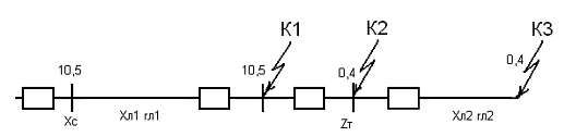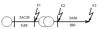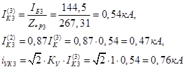 Определяем токи и мощность к.з. в точке К3
