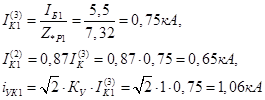 7. Определяем токи и мощность к.з. в точке К1