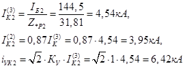 Определяем токи и мощность к.з. в точке К2