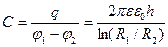 3. Что называется электроемкостью конденсатора, и от чего она зависит? Рассказать об электроемкости цилиндрического конденсатора. В каком случае для вычисления электроемкости цилиндрического конденсатора можно пользоваться формулой для плоского конденсатора?