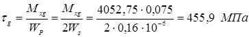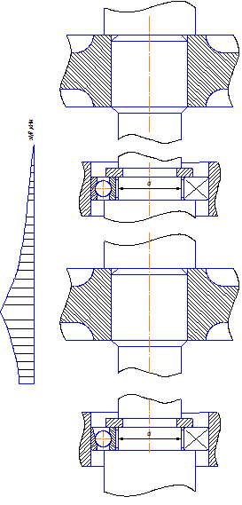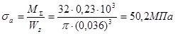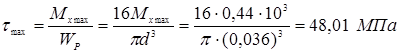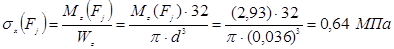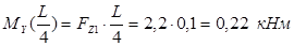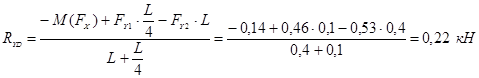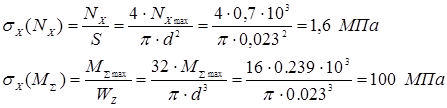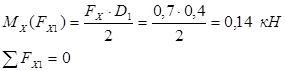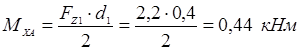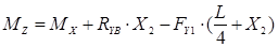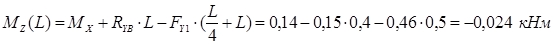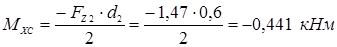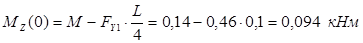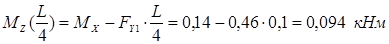 Суммарный момент достигает максимума в месте крепления радиального роликового подшипника, поэтому расчет на прочность проводим для точки
