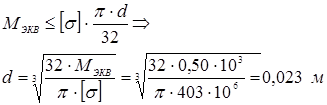 Построим алгоритм для определения диаметра вала из условия прочности в опасном сечении: