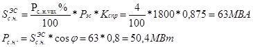 Pс. н. max % = 4%; PЭС =1800 МВт; Кспр =0,875 [Л2, с. 12, Т. 1.9]