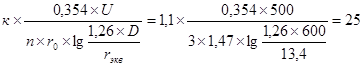 Принимаем [Л1, с. 375] lрасч=1,7*l=173 м, т. к. ТА соединен в неполную звезду [Л1, с. 374].