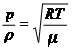 где γ – отношение теплоёмкости газа при постоянном давлении Cp и постоянном объёме Cv , M=μ