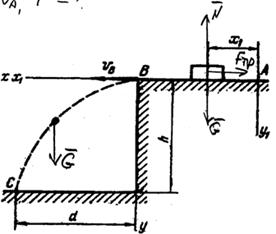2. Рассмотрим теперь движение груза на участке ВС ; найденная скорость VB будет начальной скоростью для движения груза на этом участке (V0 =VB ). Проведем из точки В оси Вх и Ву и составим дифференциальное уравнение груза в проекции на ось Вх :