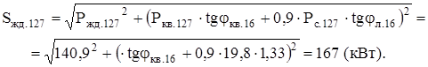 Ржд.127 = Ркв.127 + 0,9 · Рс.127 = 140,9 + 0,9 · 19,8 = 158,7 (кВт).