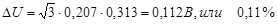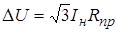 Определяется падение линейного напряжения ΔU для трехфазного трансформатора напряжения:
