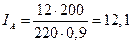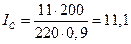 где UФ – фазное напряжение сети, В, UФ = 220 В;
